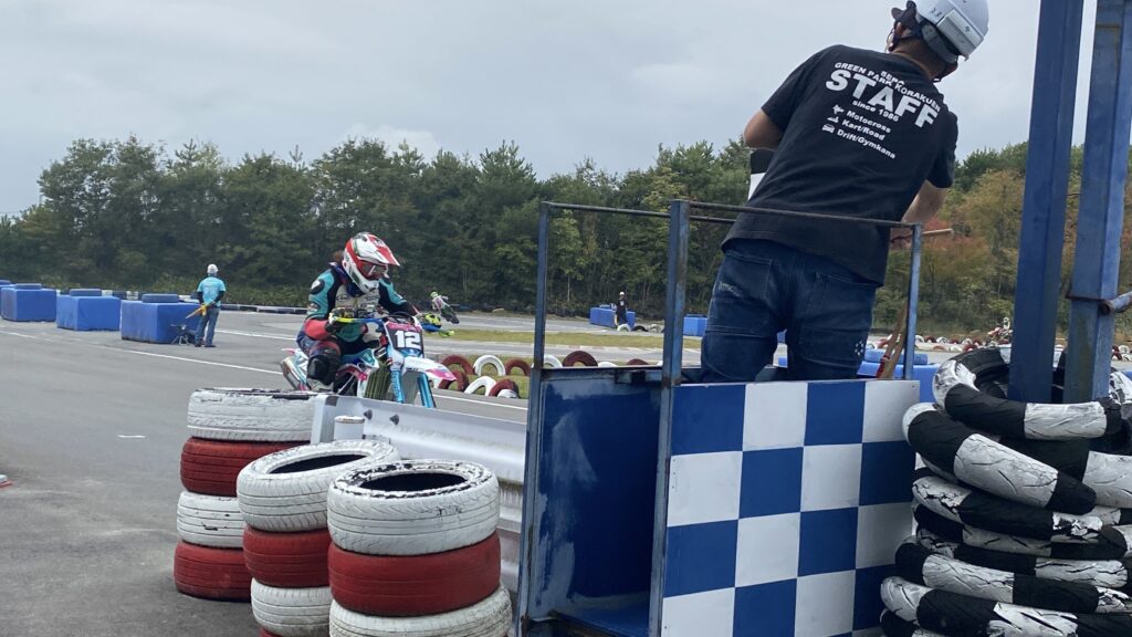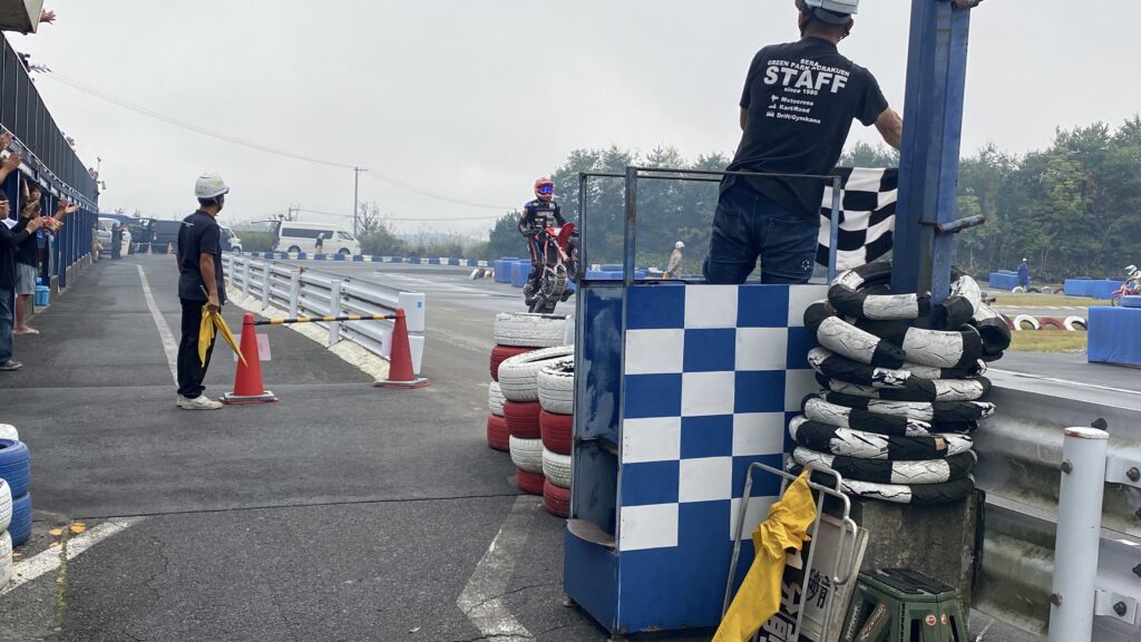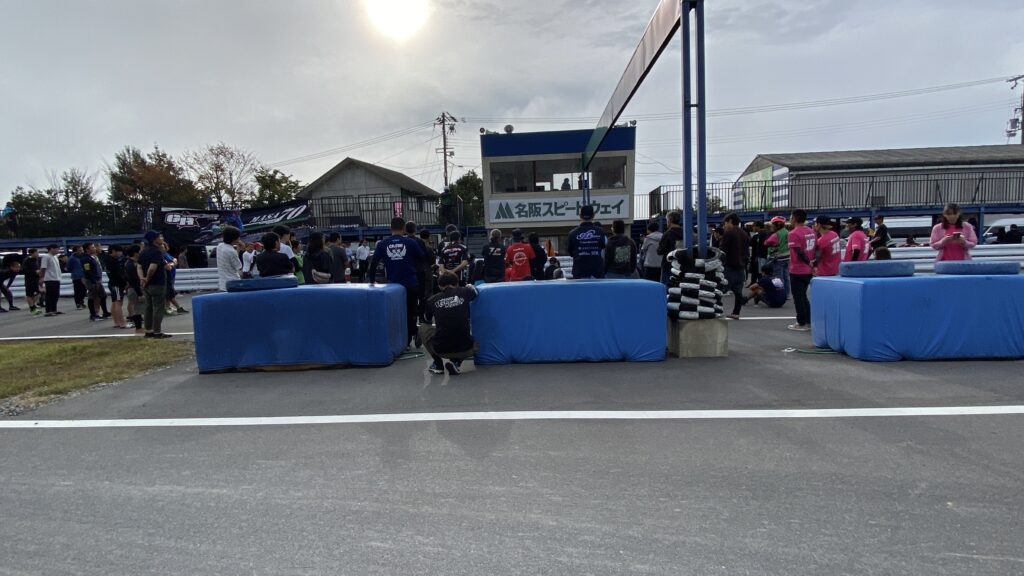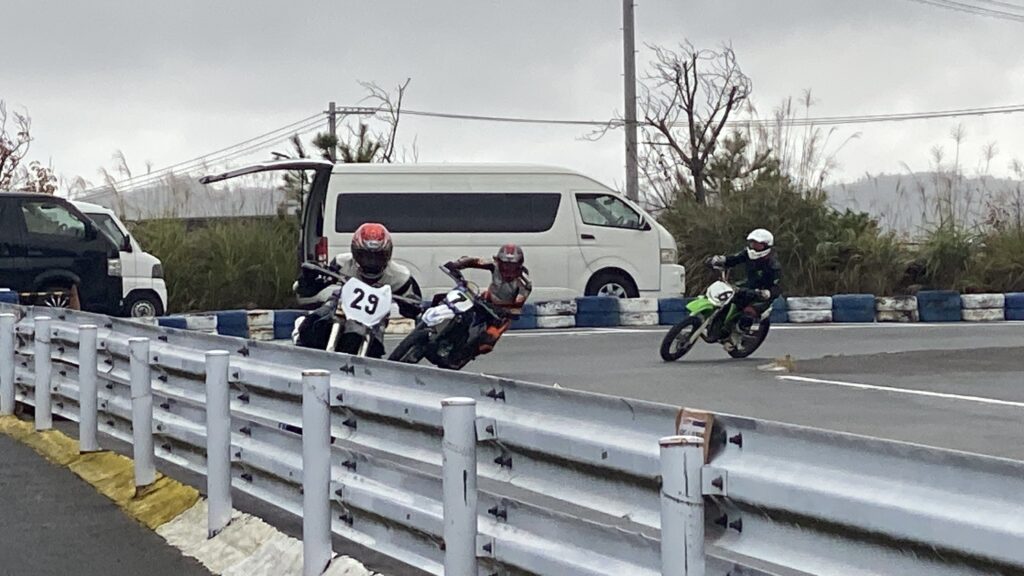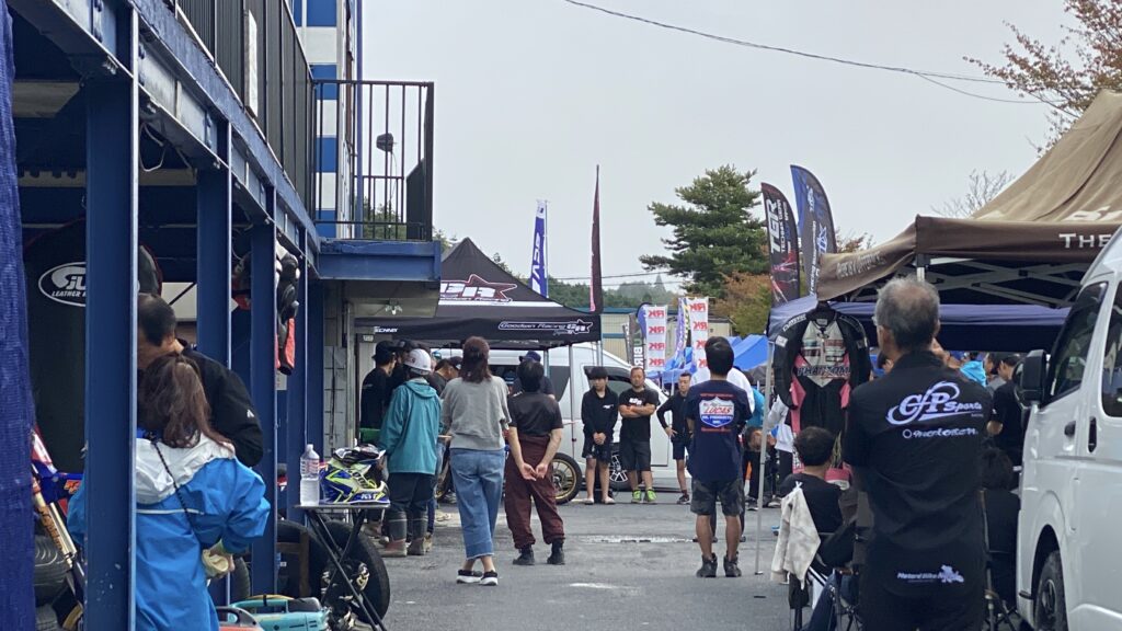 ライダースブリーフィングが始まってから…横のコースのドリフトイベントが始まり、説明が聞き取れない状況に…
