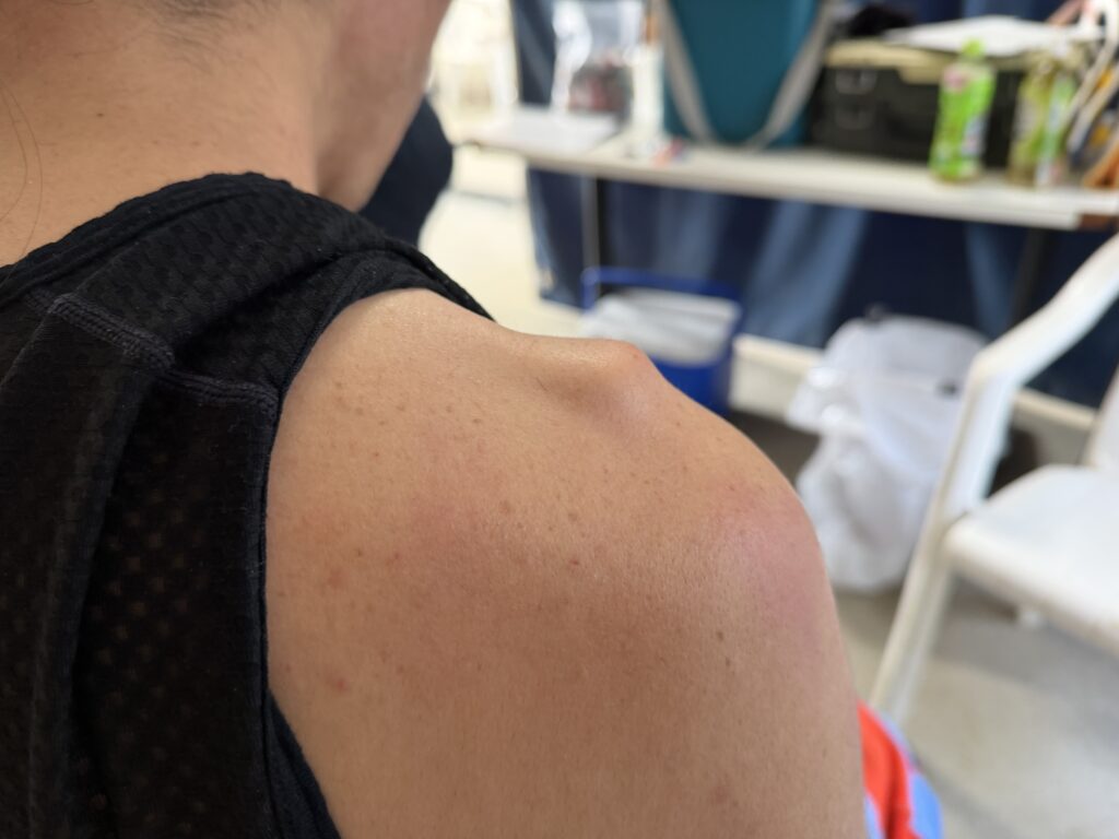 そんな怪我人の中で、肩を負傷したと救護所に来ました。